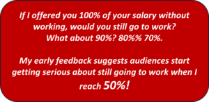 If I offered you 100% of your salary without working, would you still go to work? What about 90%? 80%? 70%? My early feedback suggests audiences start getting serious about still going to work when I reach 50%! The post-work future is coming! Ironically, this is mostly looked at with fear and trepidation. Pause for […]