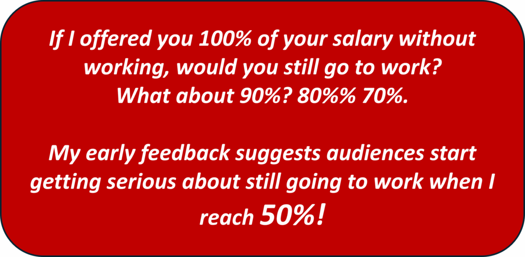 If I offered you 100% of your salary without working, would you still go to work? What about 90%? 80%? 70%? My early …